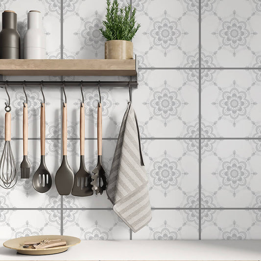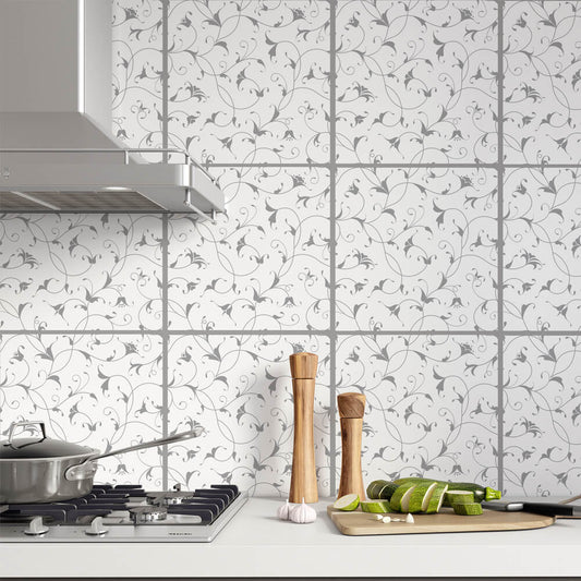 Kakeldekor viktoriansk blommor grå 2