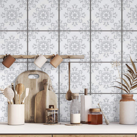 Kakeldekor små blommig grå