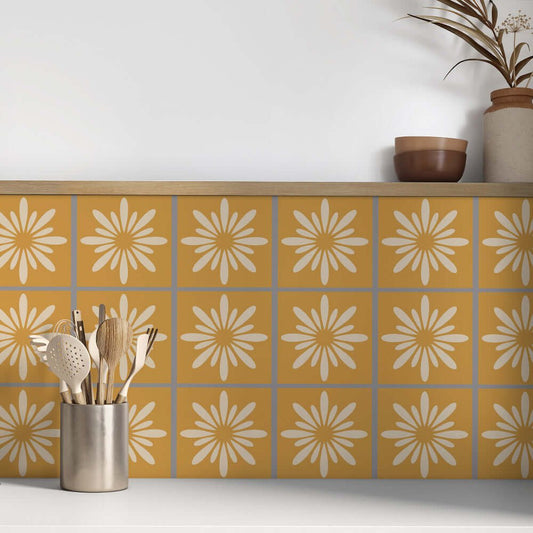 Kakeldekor retroblomma gul